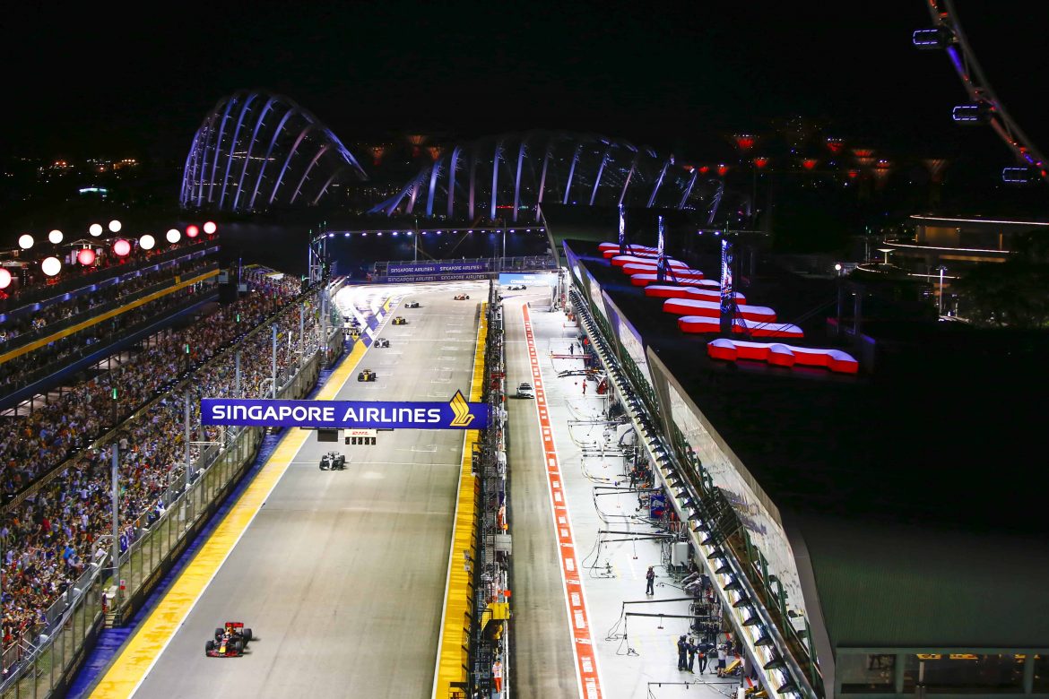 Thrilling race action as the cars head down the Pit Straight
